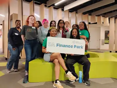 Image caption: Volunteers after a day supporting students at JA Finance Park.